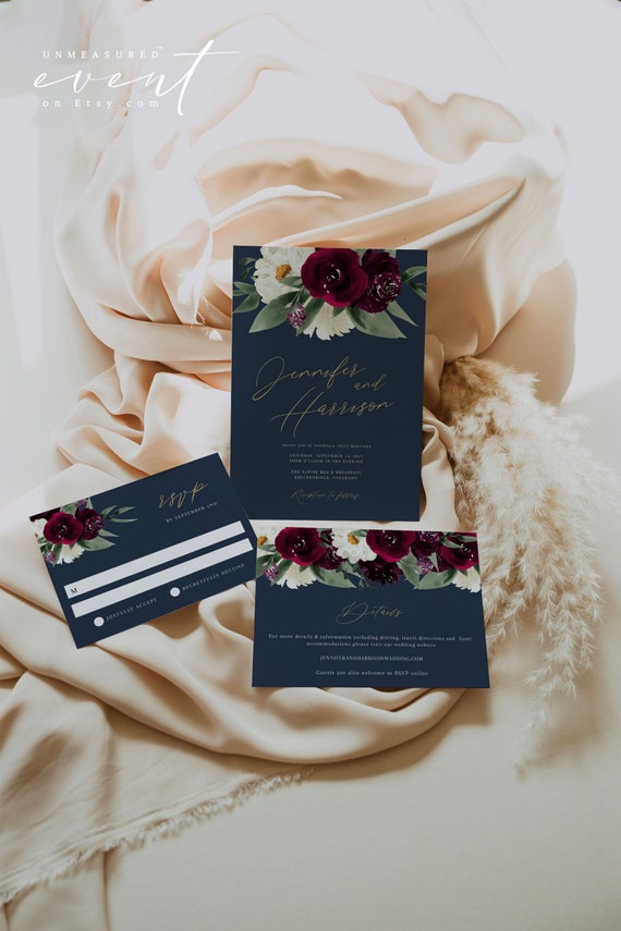 Rosa Bordeaux Wedding Invitation Template Set Moody Wedding Etsy