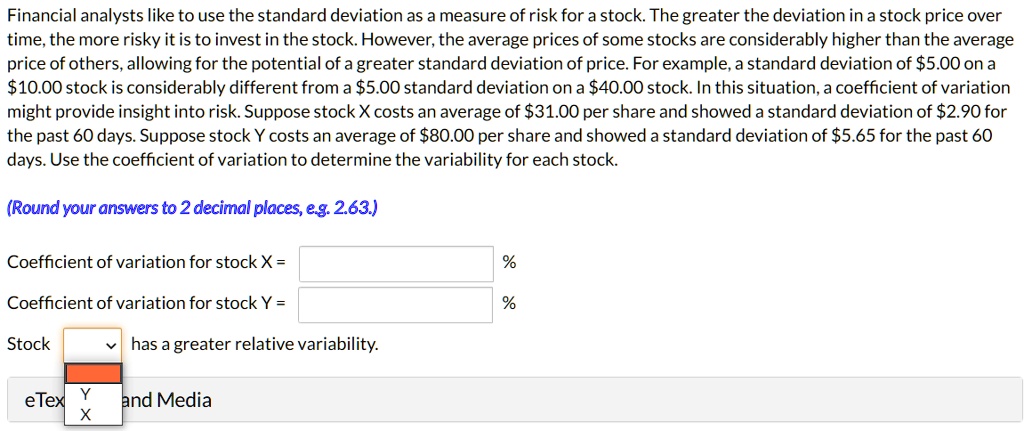 Solved Financial Analysts Like To Use The Standard Deviation As Measure Of Risk For A Stock The Greater The Deviation In A Stock Price Over Time The More Risky It Is To